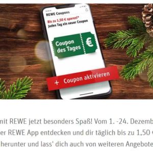 Es gibt ihn heute (18.12.) noch einmal: über die REWE-App könnt Ihr den höchsten und damit sehr beliebten 1,50€ Coupon nutzen.