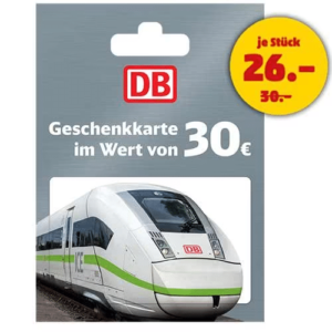Rewe: Deutsche Bahn (DB) 30€ Geschenkkarte für 26€ (ab 11.03.2024)