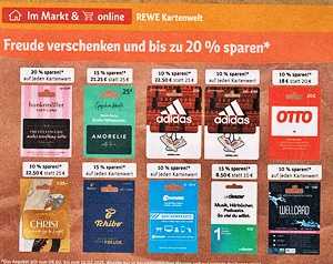 Vom 08.02-2021 – 13.02.2021 hat der Rewe wieder seine Kartenwelt mit bis zu 20 % Rabatt in der Werbung