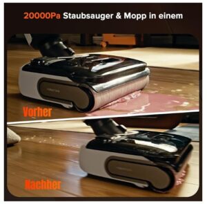 - Starke Wischleistung: Beseitigen Sie hartnäckige Verschmutzungen mit einer Absaugleistung von 20.000 Pa und einer Moppdrehzahl von 450 U/min. Dieser kabellose Nass- und Trockensauger entfernt Schmutz, sprüht gleichmäßig Wasser und macht Hartböden makellos, ohne dass man sich hinknien muss. Beseitigen Sie Krümel, verschüttete Flüssigkeiten und Schmutz in einem Arbeitsgang!