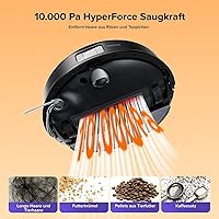 - 10.000 Pa HyperForce Saugkraft: Mit einer beeindruckenden Saugkraft von 10.000 Pa hebt er mühelos eingebettete Tierhaare, Krümel und Schmutz aus Teppichen, Hartholzböden und Ritzen.