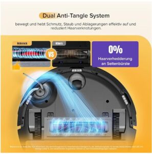 - Dual Anti-Tangle-System: Ausgestattet mit einer JawScrapers-Kamm-Hauptbürste und einer verhedderungsfreien Seitenbürste, reduziert Haarverwicklungen und sorgt für ein saubereres und tierfreundlicheres Zuhause.
