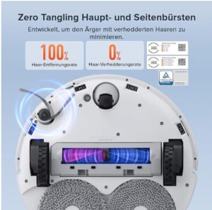 - Dual Anti-Tangle-System: Entdecke das revolutionäre doppelte Verhedderungsschutz-System des roborock Qrevo Curv S5X mit Hauptbürste und Seitenbürste, einfach perfekt für den Umgang mit langen Haaren und für haustierfreundliche Wohnungen. Genieße eine Reinigung ohne verhedderte Haare und ähnliches, die Bürste reinigt sich fast von selbst.