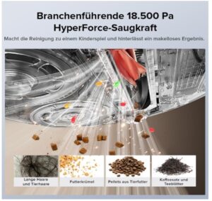 - [Extreme Saugkraft von 18.500 Pa] Branchenführende 18.500 Pa HyperForce Saugkraft in Kombination mit den Borsten der DuoDivide Bürste garantieren, dass der roborock Qrevo Edge S5A auch anspruchsvolle Stellen wie Teppiche und Lücken in harten Böden gründlich reinigt und dabei selbst die kleinsten Partikel entfernt.