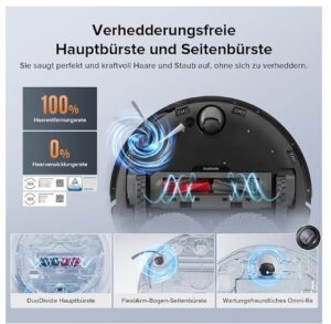 - [ Intelligente Hindernisvermeidung und KI-gesteuerte Reinigung] Präzise Navigation und Vermeidung von Hindernissen mit Reactive Tech Obstacle Avoidance und PreciSense LiDAR Navigation. Innerhalb weniger Sekunden werden Hindernisse präzise umfahren und der effizienteste Weg für eine gründliche Reinigung gefunden.