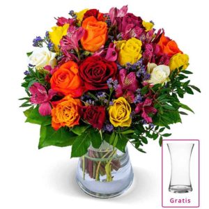 Rosenstrauß Farbwunder mit über 40 Blüten+Gratis Vase