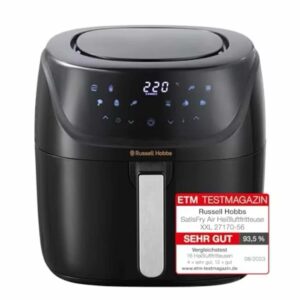 Derzeit bekommt man bei Amazon folgendes Angebot:Russell Hobbs Heißluftfritteuse XXL in schwarz für 69,99€ Super Gerät. Vielseitig einsetzbar. Info zum Produkt Mit gutem Gewissen kochen – wenig oder kein Öl erforderlich, 8 Liter Heißluftfritteuse mit schneller Luftzirkulation bis zu 220°C 45% mehr Fassungsvermögen bei gleichen Produktabmessungen im Vergleich zu COSORI Heißluftfritteuse 5,5l XXL Leicht zu reinigen – Antihaftbeschichteter Frittierkorb und Einsatz für knusprig-krosse Ergebnisse sind spülmaschinenfest* (getestet mit 100 Spülmaschinengängen) 7-in-1 Funktionen: Heißluftfrittieren, Grillen, Backen, Braten, Dörren, Aufwärmen und Auftauen Leicht zu reinigendes, digitales Touchscreen-Bedienfeld mit 10 voreingestellten Programmen: Pommes Frites, Fisch, Eier, Huhn, Gemüse, Backen, Grillen, Dörren, Auftauen, Aufwärmen Erinnerung zum Wenden des Gargutes (Signalton nach der Hälfte der Garzeit), variable Temperaturregelung für ein gleichmäßiges Garergebnis, Zeiteinstellungen und automatischer Sicherheitsabschaltung Russell Hobbs SatisFry Rezeptbuch zum herunterladen unter der Rubrik „Leitfäden und Dokumente – Broschüre