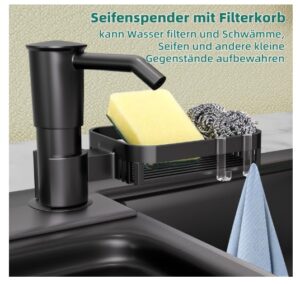 Schwarzer Spülmittelspender inkl. Schwammhalter