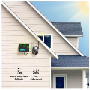 - 【Solar und drahtlos】:Mit dieser 4g solarbetriebenen Außenkamera müssen Sie keine Batterien wechseln oder Kabel verlegen. Die Kamera wird kontinuierlich mit Solarenergie aufgeladen, um eine ununterbrochene Aufzeichnung von Filmmaterial zu gewährleisten. Genießen Sie die Freiheit der kabellosen Installation, reduzieren Sie Ihren ökologischen Fußabdruck und leisten Sie Ihren Beitrag zum Umweltschutz. (Das Aussehen der Solarmodule kann aufgrund von Chargenunterschieden variieren, hat aber keinen Einfluss auf die Nutzung der Ergebnisse.)