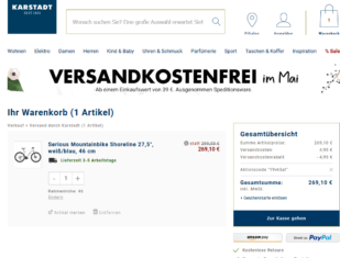 Bei Karstadt bekommt man mit dem Gutscheincode:19vk5af Serious Mountainbike Shoreline 27,5″, weiß/blau für 269,10 statt PVG ab 399,99 Euro inkl.Versand