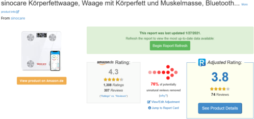 Bei Amazon wer den 1.012 globale Bewertungen mit 4,3 von 5 Sternen angezeigt. Sieht so erst mal nicht schlecht aus, aber…