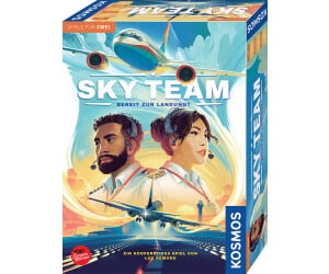 Bereit zur Landung? In dem kooperativen Spiel schlüpft ihr zu zweit in die Rollen einer Pilotin und eines Co-Piloten, die gemeinsam ein Flugzeug steuern. Ziel ist es, das Flugzeug sicher auf verschiedenen Flughäfen weltweit zu landen. Dafür müsst ihr eure Würfel geschickt den richtigen Feldern im Cockpit zuordnen, um das Flugzeug auszubalancieren, die Geschwindigkeit zu kontrollieren, die Landeklappen und das Fahrwerk auszufahren und den Tower zu kontaktieren. Stellt sicher, dass der Flugraum auch tatsächlich frei ist und vor allem: Verfehlt ja nicht die Landebahn! Von Montreal bis Tokio – jeder Flughafen hat seine eigenen Landebedingungen. Beweist euer Können als eingespieltes Team am Steuer des Jumbo-Jets. Seid ihr bereit für den Nervenkitzel? Dann erlebt Sky Team – das ultimative Spiel für angehende Piloten und Pilotinnen ab 12 Jahren.