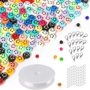 - Paket enthalten: 200 * 10mm Smiley Perlen; 50 * Offene Sprungringe; 20 *Klauenverschlüsse; 1* Kristallsaiten