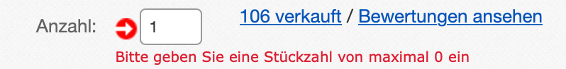 Bitte geben Sie eine Stückzahl von max. 0 ein.