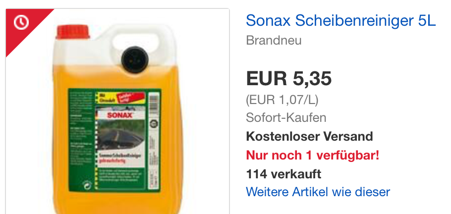 A.T.U verkauft über eBay den Sonax ScheibenReiniger gebrauchsfertig Citrus (5 l) für 5,35€ (Vergleichspreis: ~11€) Ersparnis ~6€