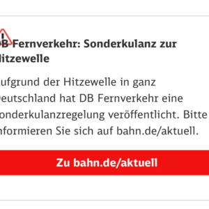Sonderkulanz Deutsche Bahn wegen Hitze am 25.07. und 26.07.