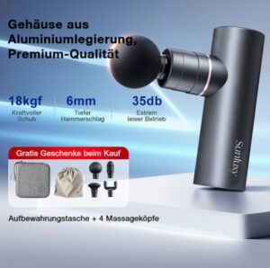 - 【4 Austauschbare Massageaufsätze】– Vier Aufsätze richten sich an verschiedene Körperbereiche wie Rücken, Beine, Arme oder Gelenke. Ideal für tägliche Nutzung und sportliche Regeneration mit präziser, effizienter Wirkung.