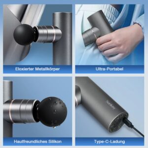 - 【4 austauschbare Massageaufsätze】– Vier Aufsätze richten sich an verschiedene Körperbereiche wie Rücken, Beine, Arme oder Gelenke. Ideal für die tägliche Nutzung und sportliche Regeneration mit präziser, effizienterer Wirkung.