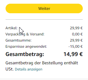 Bei mir wurde zusätzlich noch ein 20% Coupon auf der Produktseite angezeigt, vielleicht ja bei euch auch?