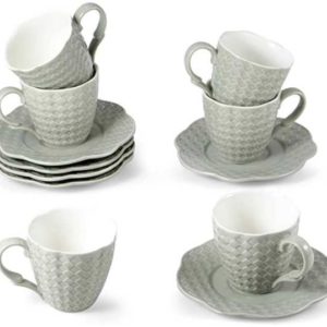 - AUSDRUCKSSTARKES DESIGN: Das Vintage grau grün verleiht suntun porzellan kaffeeservice einen elegante ästhetischen Stil, der klassische runde Formen und das exquisite Rautenförmige Relief Dekor werden harmonische kombiniert. Dieses kreativen Design macht das geschirrset ideal für jede Küche!