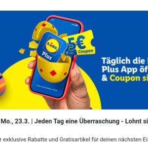 Ab 23.3. gibt es in der Lidl App wieder gratis Coupons. Dafür einfach täglich die App öffnen und hoffentlich über gute Coupons mit Rabatten und gratis Artikeln freuen 😉