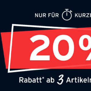 Bis Samstag, 06.02.2021, bekommt ihr bei Tchibo 20% Rabatt wenn ihr mindestens 3 Artikel aus den Aktionsseiten kauft. Ihr benötigt keinen Code, der Rabatt wird automatisch im Warenkorb abgezogen.