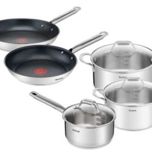 Tefal Ultimum Edelstahl Topf- & Bratpfannenset (28 + 24 cm Pfanne, 24 + 20 cm Kochtopf, 18 cm Stieltopf)
