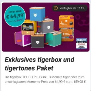 Ab 07.11.24 gibt es die tigerbox TOUCH PLUS inkl. 3 Monate tigertones