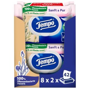 Lieferumfang: 1 Megapack Tempo Feuchte Toilettentücher „Sanft & Pur“ mit 16 Packungen à 42 Tücher – recycelbare Verpackung mit Feuchtigkeitsverschluss, der Tücher feucht und hygienisch hält