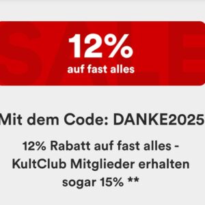 Rabatt: 12% auf fast alles / 15% für KultClub Mitglieder
