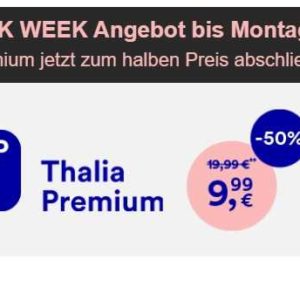 Thalia Premium bekommt man nun zum halben Preis, d.h. statt 19,99 Euro für 9,99 Euro jährlich.