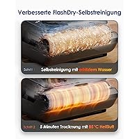 - Komplett-Selbstreinigung & 5 Minuten Trocknung mit 85°C Heißluft:Mit nur einem Knopfdruck werden Walzenbürste, Saugöffnung und Abdeckung gründlich mit heißem Wasser gereinigt und anschließend in nur 5 Minuten bei 85°C heißer Luft vollständig getrocknet.