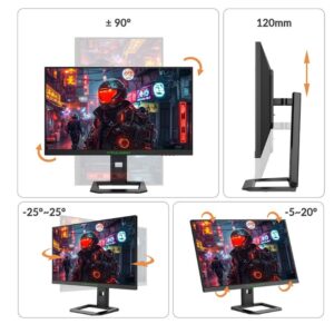 - Der Titan Army P2710S Gaming-Monitor wird mit einem drehbaren Ständer geliefert, der eine einfache Anpassung des Bildschirms an Ihre bevorzugte Ausrichtung ermöglicht. Mit anpassbaren Neigungs-, Schwenk-, Vertikal- und Höhenoptionen bietet dieser Monitor optimalen Komfort und kann ohne Adapter an der Wand montiert werden, was zusätzlichen Komfort bietet.