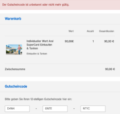- Eine individuelle Aral SuperCard Einkaufen & Tanken mit 90 € Wert in den Warenkorb legen