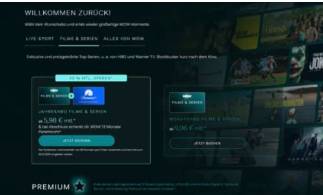 Durch einen Trick kann man sich jetzt ein reduziertes Jahresabo für 71,76€ bei WOW (ehemals Sky Ticket) sichern – 12 Monate Filme & Serien Standard (kein Premium) und Paramount+ gratis dazu!
