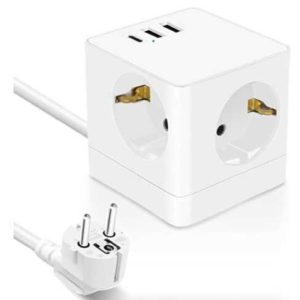 - Die Steckdosenwürfel mit 3 Netzsteckdosen 3680W(Max 250V, 16A), 2 USB-Anschlüsse und 1 Typ-C Anschluss (Max 5V, 3,4A), mit einem 1,5 m langen Netzkabel. Steckerleiste zum parallelen Laden von Smartphones, Tablets, Computern, etc. Kein separater Steckdose adapter erforderlich.