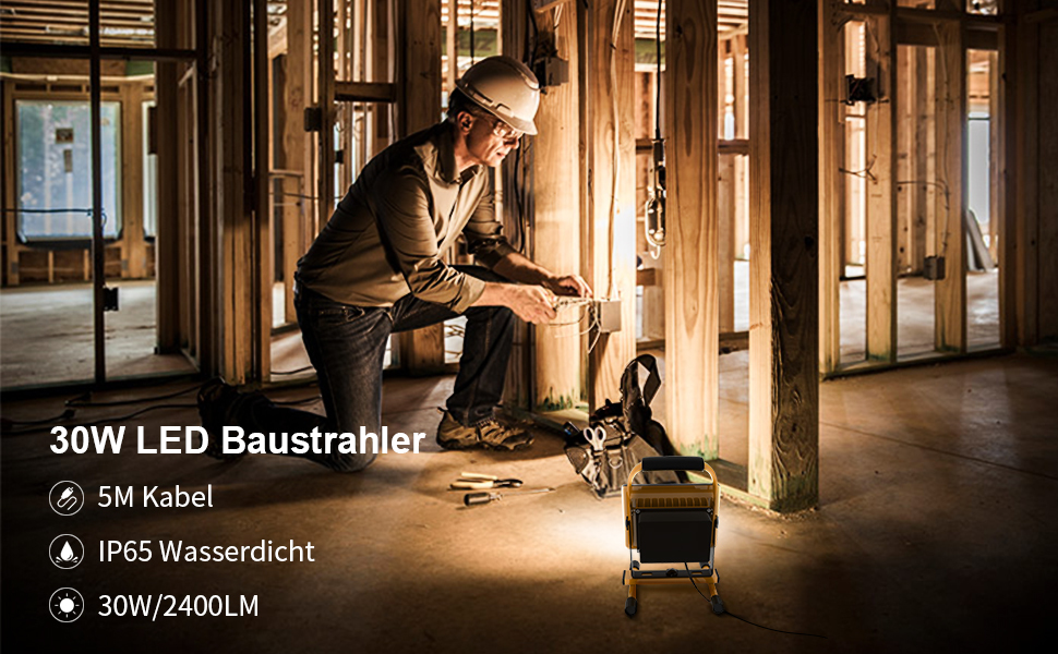 - Superhell: 2400 Lumen Leuchtkraft, 6000k Kaltweiß LED Baustrahler mit 5M Netzkabel