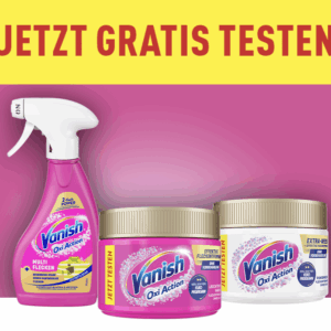 Mit der neuen Gratis testen Aktion von Vanish kannst du ausgewählte Fleckenentferner ganz ohne Risiko ausprobieren. Im Aktionszeitraum bekommst du beim Kauf eines teilnehmenden Produkts den Kaufpreis erstattet. Perfekt, um die Wirksamkeit der Produkte selbst zu testen, ohne Geld zu verlieren. Die Teilnahme ist unkompliziert und komplett online möglich. Wichtig ist nur, dass du dich an die Vorgaben hältst und die richtigen Produkte kaufst. Da das Kontingent begrenzt ist, lohnt sich eine schnelle Teilnahme.