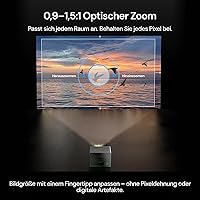 - Präzisionsoptik für jeden Bereich – Mit dem OpticFlex-Linsensystem (Projektionsverhältnis 0,9–1,5) und automatisch anpassbaren Funktionen wie Fokus und Trapezkorrektur erhalten Sie in jedem Raum, ob klein oder groß, ein makelloses Bild ohne Verluste bei der Bildschärfe. Sie können mühelos bis zu 7,6 m weit projizieren und verfügen über eine tragbare und flexible Lösung, die gestochen scharfe Bilder liefert und die Einschränkungen herkömmlicher Fernseher übertrifft.