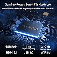 - Zukunftssicheres 4K-Streaming – Erleben Sie die Zukunft der Projektion mit dem hochmodernen Al-SoC MT9618-Chipsatz, der mit 4 GB RAM und 128 GB ROM ausgestattet ist und im Vergleich zu herkömmlichen 2 GB/32 GB-Projektoren eine deutlich höhere Leistung bietet. Mit dem verbesserten Arbeitsspeicher und der erweiterten Speicherkapazität genießen Sie nahtloses Multitasking, schnelleres Umschalten zwischen Apps und flüssigeres 4K UHD-Streaming – ohne lästige Verzögerungen. Mit dieser zukunftssicheren Technologie sind Sie für kommende Anforderungen dauerhaft gerüstet.