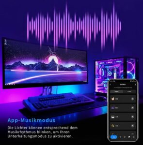 - Der Vivreal HM-5-30 RGBIC LED Streifen verwandelt jeden Raum in eine lebendige und atmosphärische Umgebung. Dank der IC-Segmentsteuerung erzeugt er mehrere Farben gleichzeitig entlang des Streifens – perfekt für fließende Übergänge und dynamische Beleuchtungseffekte. Mit dem Musik-Synchronisationsmodus reagieren die LEDs auf Geräusche, ideal für Partys oder immersive Gaming-Setups. DIY-Modi ermöglichen die vollständige Farbanpassung, während 64 Szenen und eine 0–100% Dimmfunktion vielseitige Beleuchtungsoptionen bieten. Die Timerfunktion erleichtert den täglichen Gebrauch. Ob im Wohnzimmer, Schlafzimmer, Gaming-Bereich oder als saisonale Dekoration – dieser LED-Streifen bringt Farbe und Stil in jeden Raum.
