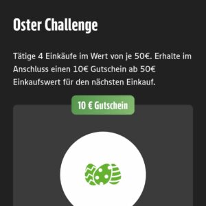 Tätige 4 Einkäufe im Wert von je 50€ – dürfte für den Ostereinkauf kein Problem darstellen- . Erhalte im Anschluss einen 10€ Gutschein ab 50€ Einkaufswert für den nächten Einkauf.