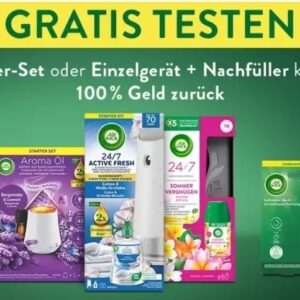 Kaufe zwischen dem 02.02. und 29.03.26 ein Starterset oder Einzelgerät + Nachfüller der Marke Airwick und bekomme 100% Geld zurück.