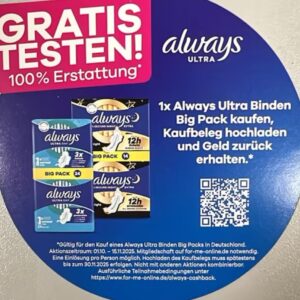 Always Ultra Binden Big Pack Gratis Testen Geld zurück Garantie ab 01.10.25 bis 15.11.25