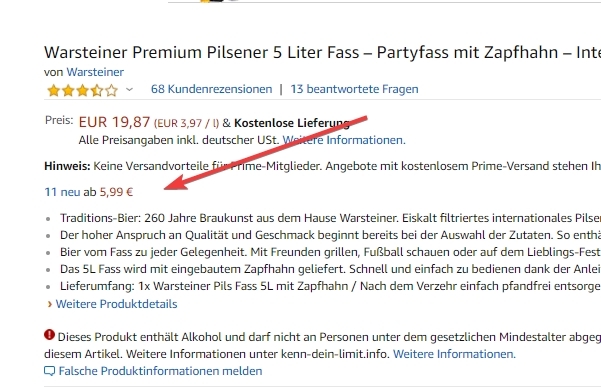 Bei Amazon erhaltet ihr jetzt das Warsteiner Premium Pilsener 5L Fass für 5,99€ (Vergleichspreis: ~9,49€) Ersparnis ~3,50€