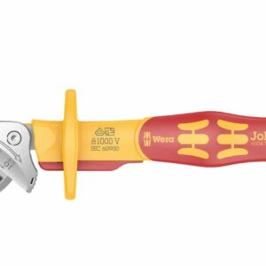 Stückgeprüftes Werkzeug gem. IEC 60900 bei 10.000 V für sicheres Arbeiten bei der zugelassenen Spannung von 1.000 V. Der verstellbare VDE Maulschlüssel greift stufenlos und automatisch alle Sechskantgrößen im angegebenen Abmessungsbereich – metrisch und zöllig. Der integrierte Hebelmechanismus klemmt die Sechskant-Schraube bzw. -Mutter zwischen den Backen sicher ein, was die Gefahr des Abrutschens und der Beschädigungen deutlich verringert. Die Ratschenfunktion sorgt für schnelles und durchgängiges Schrauben ohne Absetzen. Durch die Nutzung der Eckweiten-Prismen ist ein Rückschwenkwinkel von nur 30° realisierbar. Die Ein-Schenkel-Konstruktion in Verbindung mit der Ratschenfunktion und dem Eckweitenprisma ermöglicht das Arbeiten auch in engen Bauräumen. Der verstellbare Joker 6004 VDE verfügt dank der 2-Komponenten-Kunststoffisolierung über einen haptisch angenehmen Griff. Die Sicherheit wird durch den Abrutschschutz am vorderen Griffende erhöht. Zusätzlicher Schutz durch die Schiebefunktion für kontaktloses und sicheres Öffnen der nicht-isolierten Backen.