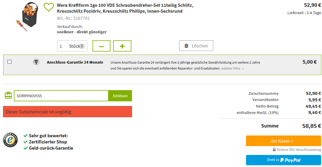Um auf den Preis zu kommen nutzt den Gutschein „SORRYNOV555“ und als Zahlungsart Sofortüberweisung (für freien Versand)