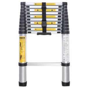 - Auf der vollen Länge von 3,2 m (10,5 Fuß) lässt sich diese Teleskopleiter auf ein Viertel ihrer Höhe zurückziehen, um sie in Ihrem Auto oder anderen begrenzten Räumen leicht zu verstauen.