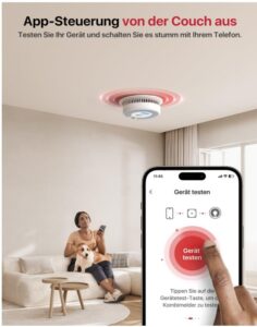 - App-Test/Stummschaltung: Testen Sie Ihre Melder oder schalten Sie sie stumm mit nur einem Antippen in der App; Sie müssen keine Leiter holen, um die Taste für Test-/Stummschaltung zu erreichen