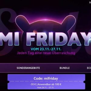 In der Zeit vom 24.11. – 27.11.2020 könnt ihr im Xiaomi Online Store einen 30€ Gutschein ab einem Einkaufswert von 100€ einlösen. Einfach den Code mifriday in der Kaufabwicklung eingeben.